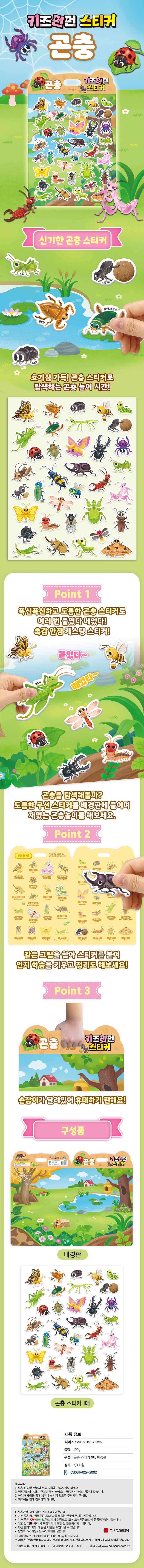 알록달록한곤충을붙였다떼었다말랑말랑한쿠션스티커로만나보세요!하나,붙였다떼었다무한반복쿠션스티커!끈적임이적어붙였다떼었다반복해서놀수있습니다.둘,케이스200%활용하기!케이스를펼치면스티커를붙이고놀수있는배경판이나와요!원하는곳에스티커를이곳저곳붙이며나만의이야기를만들수있어더욱더재밌습니다.스티커놀이가끝나고케이스안쪽알맞은자리에스티커를붙여보관하면잃어버릴걱정도없겠죠?*인증유형:안전확인CB061A027-2002