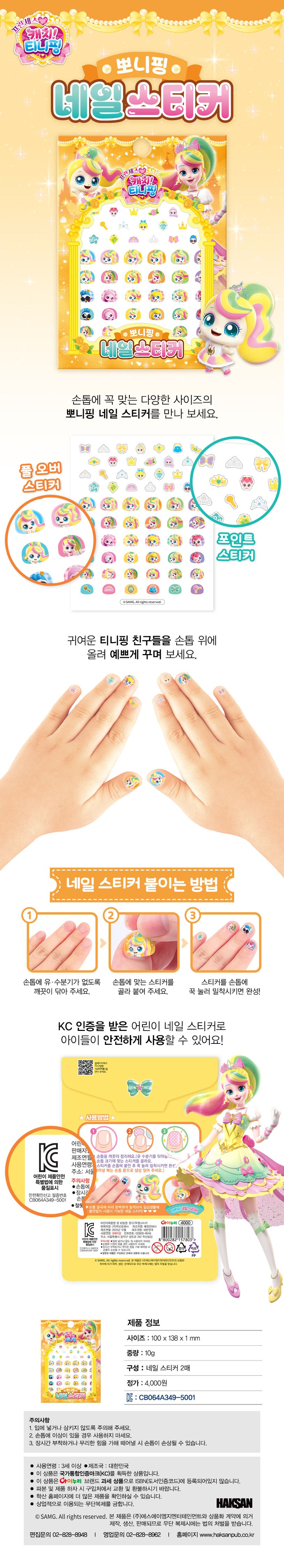 프린세스티니핑들이중요한회담장으로향하던기차에서사라진다!게다가레전드티니핑의거울까지로미앞에등장하는데…!로미는새로운로열핑과함께프린세스티니핑캐치에나선다!이모션왕국에머물던로미는각국의프린세스티니핑들이참여하는프린세스회담에초대되어회담장소로향하는기차에오른다.기차에타고있던프린세스티니핑들은달려오느라엉망이된로미를프린세스회담에맞는차림으로꾸며주기시작한다.그러던중,프린세스티니핑들이타고있던기차가알수없는힘에의해위기에처하는데…!과연로미는프린세스티니핑들을모두찾아캐치하고,프린세스회담을다시정상화시킬수있을까?새로운티니핑들과함께펼치는로미의이야기가지금부터시작된다!내손으로직접붙이고꾸미는반짝반짝네일스티커!다양한모양의포인트스티커와손톱을전부덮는풀오버스티커로종류가2가지들어있어요!손톱을깨끗이정리한후원하는스티커를꾹눌러밀착시키면완성!간단하고쉽게내손을블링블링하게변신시켜주세요!*인증유형:안전확인CB064A349-5001