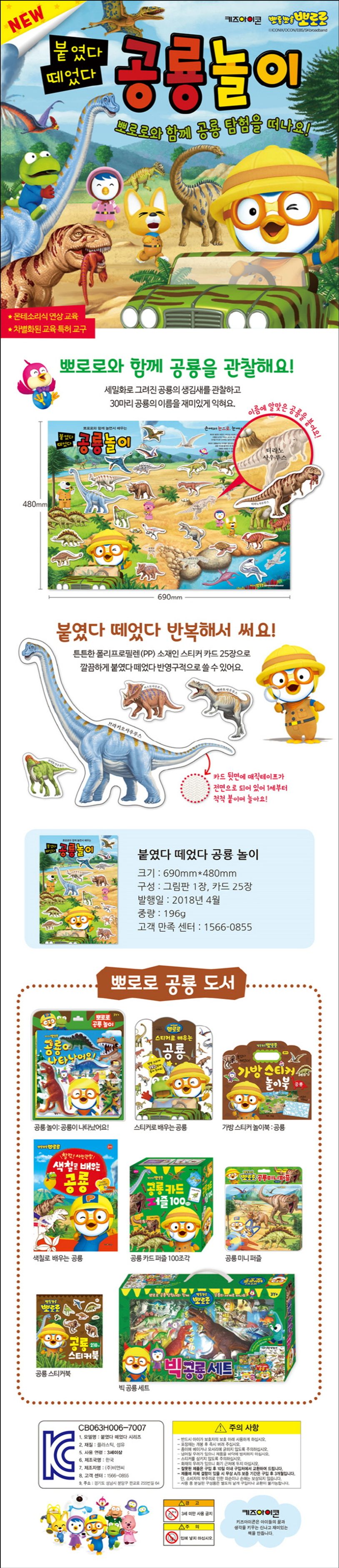 세밀화로 그려진 공룡의 생김새를 관찰하고 30마리 공룡의 이름을 재미있게 익혀요. 튼튼한 폴리프로필렌 소재인 스티커 카드 25장으로 깔끔하게 붙였다 떼었다 반영구적으로 쓸 수 있습니다.