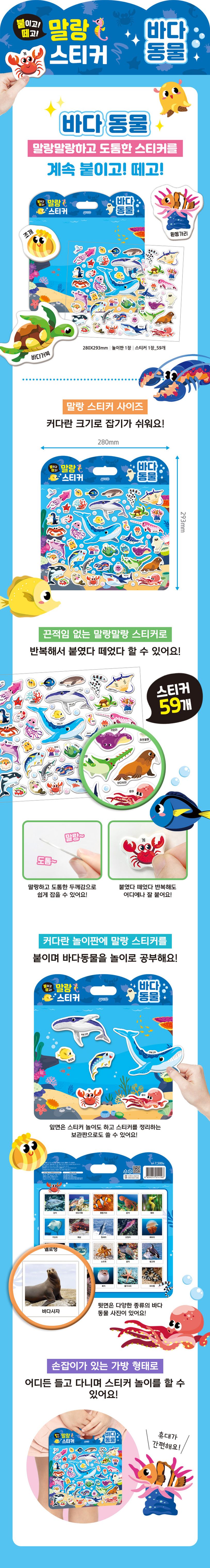바닷속이 그려진 큰 놀이판 위에 말랑말랑한 바다동물 스티커를 붙이며, 바닷속에는