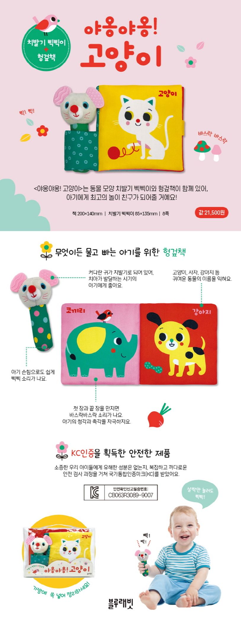 표지를 만지면 청각을 자극하는 바스락바스락 소리가 나고, 세련된 컬러의 동물 그림으로 시각을 자극하는 아기 헝겊책이에요. 무엇이든 물고 빠는 시기의 아기에게 헝겊책은 꼭 필요한 최고의 놀잇감이지요. 시각과 청각, 촉각을 자극하는 헝겊책은 오감을 자극하여 아기의 두뇌 발달에도 도움이 된답니다.