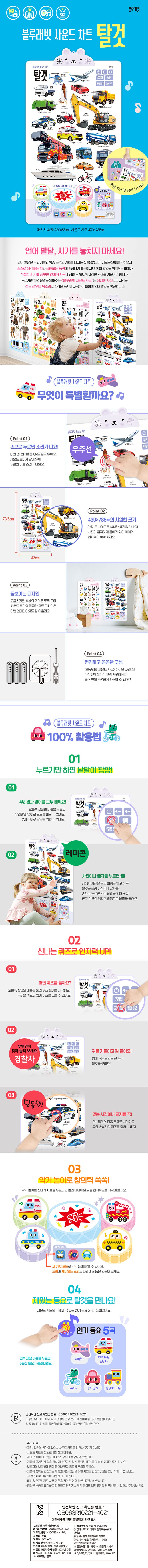 누르기만 하면 낱말을 읽어주는 〈블루래빗 사운드 차트〉는 생생한 사진으로 시각을, 전문 성우의 목소리로 청각을 동시에 자극하여 아이의 언어 발달을 촉진합니다.