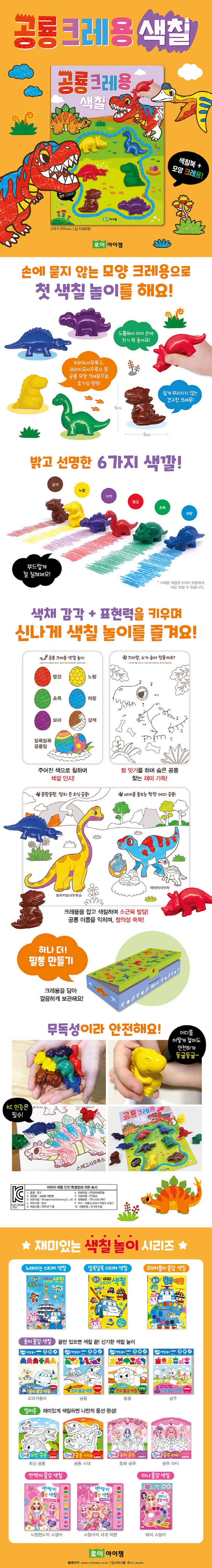 공룡 크레용 색칠 (색칠 놀이북+모양 크레용 6색)