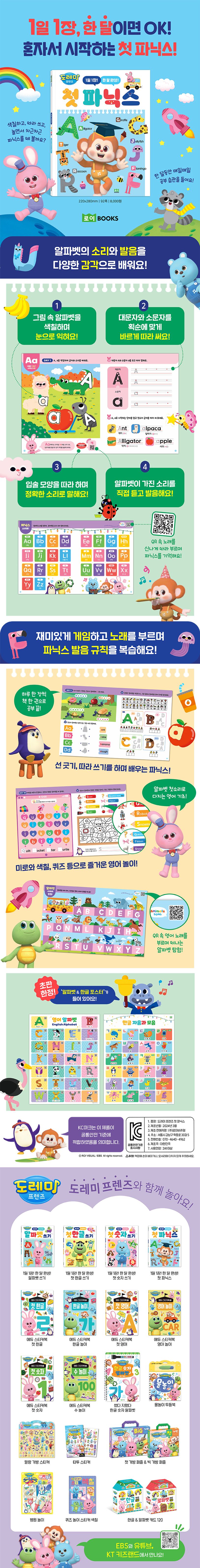 다양한 놀이 활동을 즐기고, QR을 열어 도레미 프렌즈의 신나는 노래를 따라 부르면서 우리 아이 첫 파닉스 공부를 시작해 보세요!