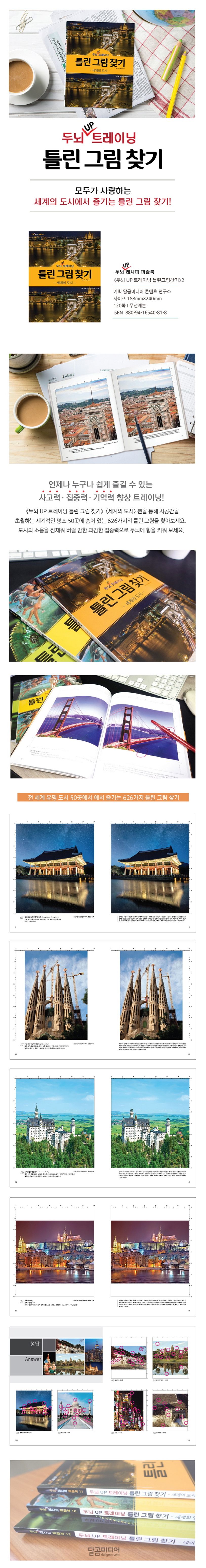 틀린 그림 찾기는 두 개의 그림에서 일부를 바꾸어 놓고 그 바뀐 부분을 찾도록 한 놀이입니다. 시공간을 초월하는 세계적인 명소 50곳에 숨어 있는 626가지의 틀린 그림 찾기를 통해 집중력과 관찰력을 높이고 여유롭고 알뜰한 시간을 누려 보세요.
