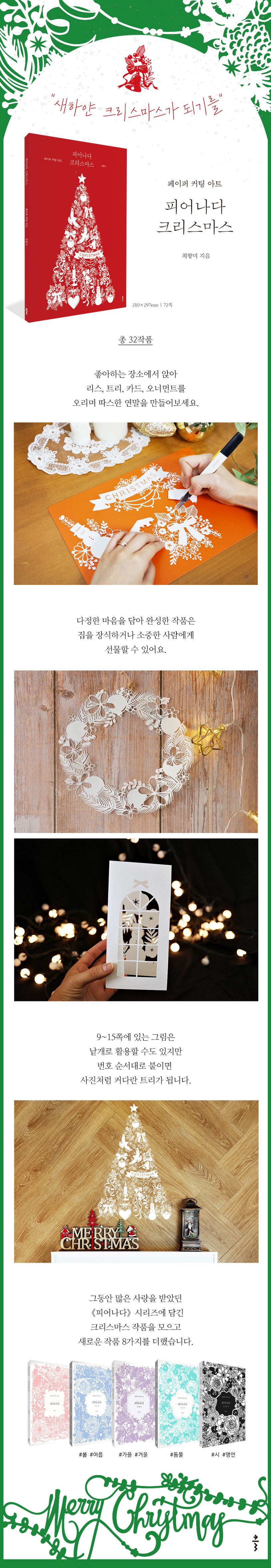 《피어나다 크리스마스》는 카드, 리스, 오너먼트, 트리 등 크리스마스에 관한 32가지 작품이 실린 페이퍼 커팅 아트 북이다. 특별한 기교 없이 선을 따라 쭉 오리면 아름다운 작품이 완성된다. 완성한 작품은 집을 꾸미거나 메시지를 더해 선물하기에 좋다. 책에 실린 QR코드를 통해 접속하면 누구나 쉽게 따라할 수 있도록 안내하는 동영상을 만날 수 있다.