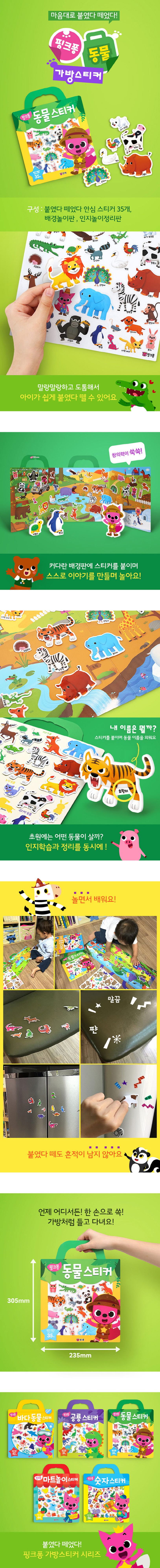 핑크퐁 동물 스티커 (붙였다 떼었다 안심 스티커 35개)