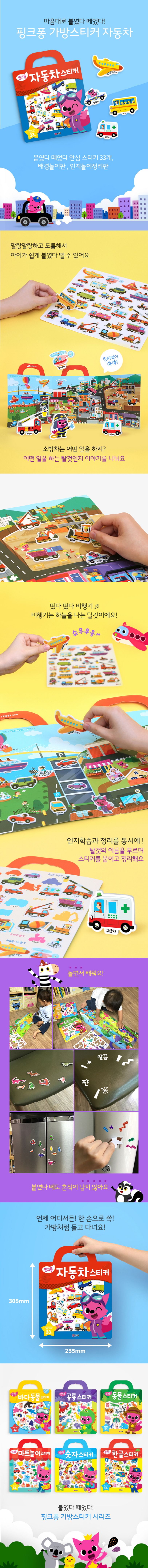 핑크퐁 자동차 스티커 (붙였다 뗐다 안심 스티커 33개)