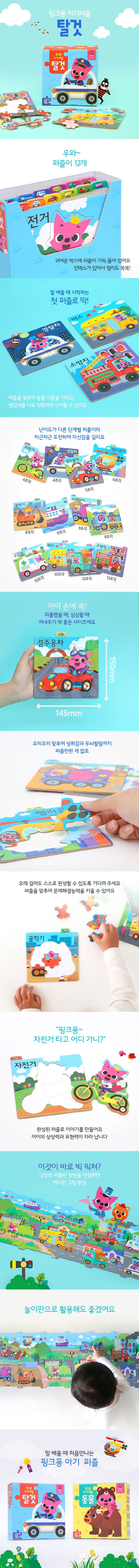 『핑크퐁 아기 퍼즐: 탈것』을 통해 아이가 좋아하는 동물, 탈것의 이름을 배우며 퍼즐의 조각을 맞추며 동물과 탈것의 생김새를 더욱 정확하게 인지할 수 있어요. 4조각, 5조각, 6조각, 8조각, 9조각, 10조각, 12조각의 퍼즐을 단계별로 맞추며 소근육을 기르고, 성취감을 느낄 수 있어요. 조각의 모양이 서로 달라 더욱 재미있게 오래도록 활용할 수 있어요.