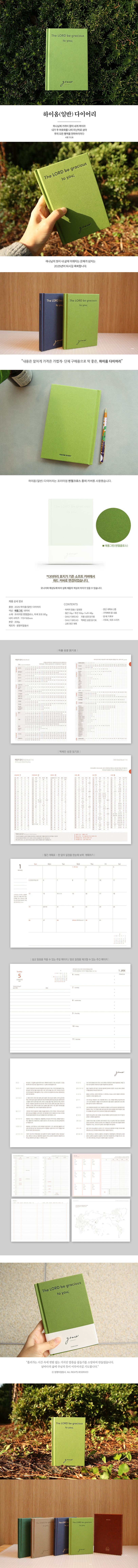 주간 계획표에 공동체 가족과 함께 나누는 한 주간의 [감사 제목], [기도 제목] 기록 공간을 수록했다. 3대 절기 주간 페이지에 배경 컬러로 포인트를 주었다. 내용 구성이나 가격 면에서 교회 단체 구매용으로 최적화 된 다이어리다.