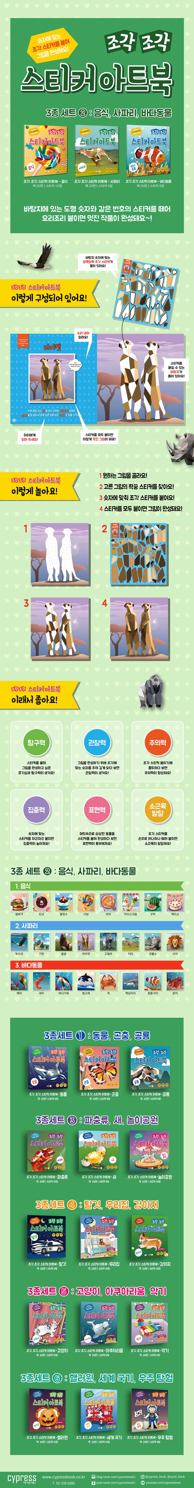 조각 조각 스티커 아트북 3종 세트 2: 음식, 사파리, 바다동물 (전 3권)