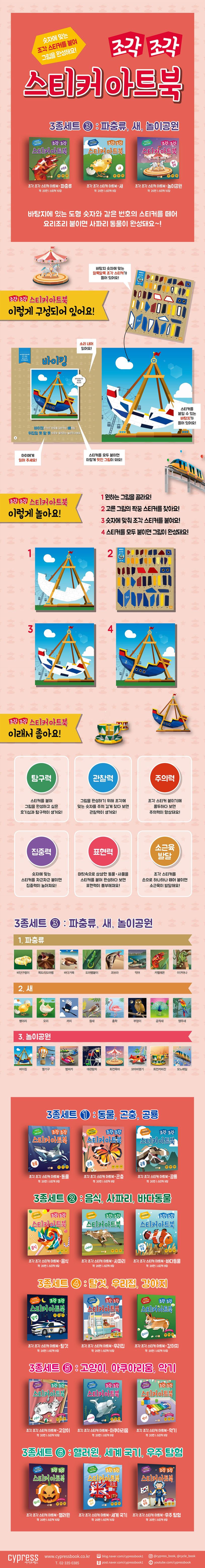 조각 조각 스티커 아트북 3종 세트 3: 파충류, 새, 놀이공원 (전 3권)