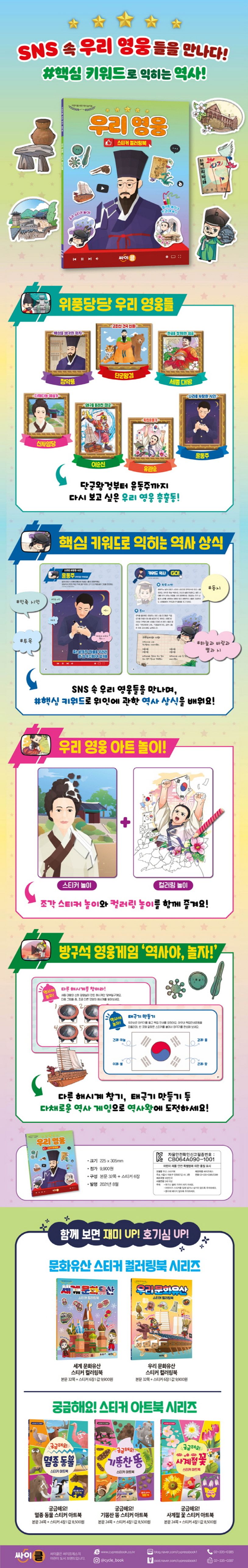 우리 영웅 스티커 컬러링북 (어린이를 위한 역사 놀이북 | 스티커북)