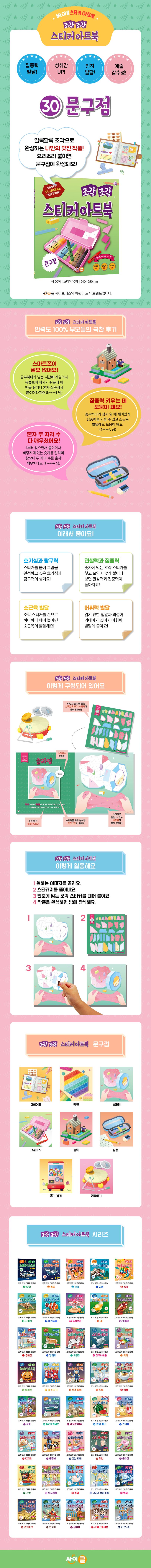 아이가 작은 손으로 스티커를 떼어내 바탕지의 그림 모양에 맞춰 요리조리 움직여 스티커를 붙이다 보면 어느새 아이들이 좋아하는 문구점 상품들이 완성돼요. 다이어리, 팝잇, 슬라임부터 블록, 필통, 리듬악기까지…. 문구점에서 쉽게 볼 수 있는 상품들을 모두 담았어요.