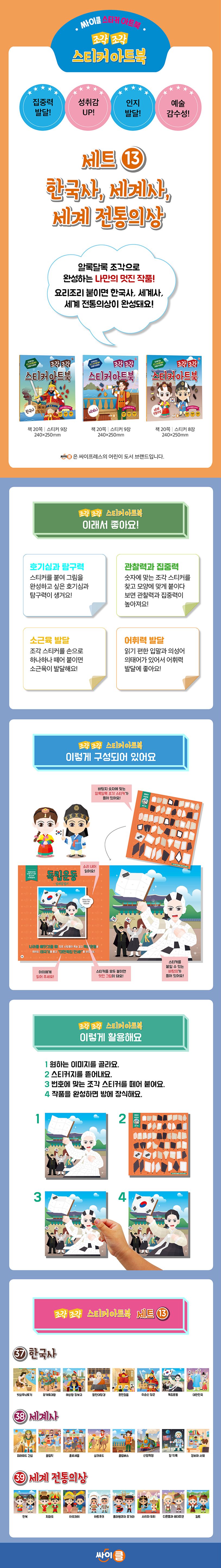 조각 조각 스티커 아트북 세트 13 (한국사+세계사+세계 전통의상 | 전 3권)