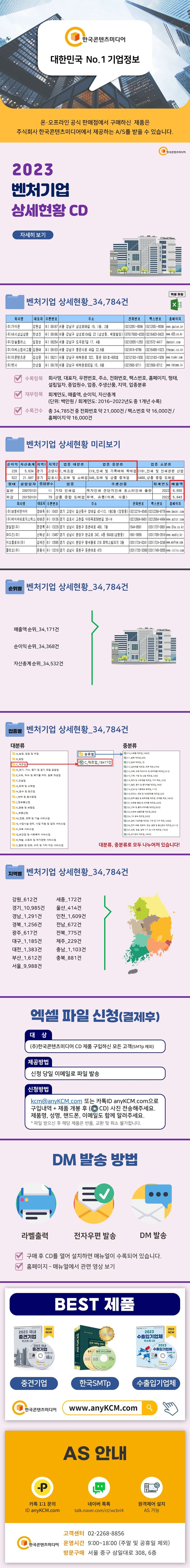 ▶〈2023벤처기업상세현황CD〉란?벤처기업상세현황을순위별,업종별,지역별로34,784건을수록했습니다.※엑셀파일로사용자가편리하게수정·편집·출력할수있습니다.〈책임의한계와법적고지〉·본제품의저작권및판권은주식회사한국콘텐츠미디어에있으며저작권법및소프트웨어법에의해보호받는라이센스저작물이므로무단복제및무단전재를금합니다.·본제품의자료수집한계로인해그정확도가일부제한됨을알려드립니다.·본제품을활용하여영리성광고정보전송을하는경우정보이용촉진및정보보호등에관한법률제50조에따른준수사항을반드시지켜야하며이를어길경우관련법에따라처벌받을수있습니다.·본제품사용에따른결과및판단은민형사를포함한일체가전적으로사용자(사)에게책임이있습니다.·본제품은전자출판물로서해당법령및실천요강을준수합니다.
