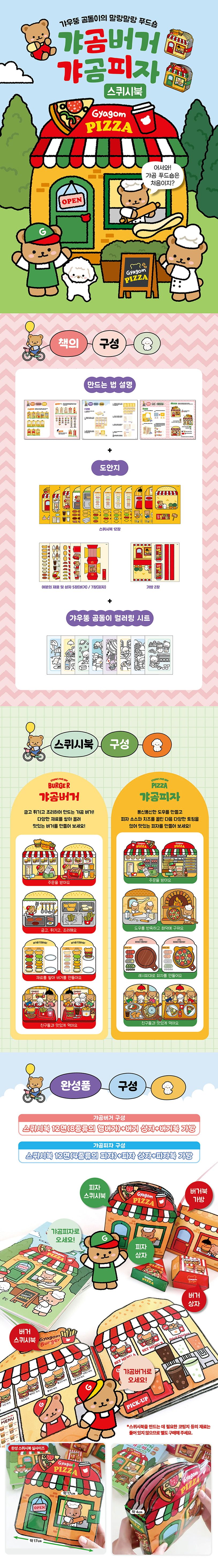 이 책은 햄버거 가게와 피자 가게, 두 가지의 푸드숍을 만들어 종이 놀이를 할 수 있게 구성되어 있다.