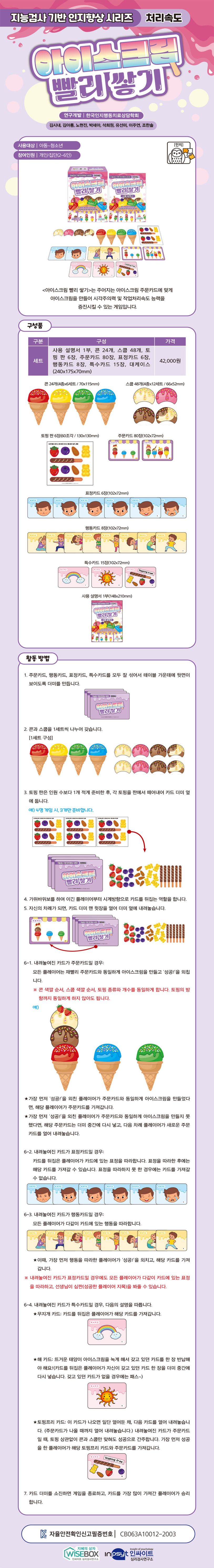 〈아이스크림 빨리 쌓기〉는 주어지는 아이스크림 주문카드에 맞게 아이스크림을 만들어 시각주의력 및 작업처리속도 능력을 증진시킬 수 있는 게임입니다.