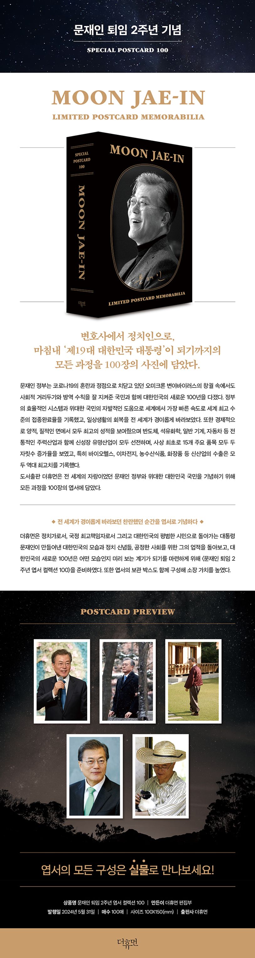 도서출판 더휴먼은 전 세계의 자랑이었던 문재인 정부와 위대한 대한민국 국민을 기념하기 위해 모든 과정을 100장의 엽서에 담았다.