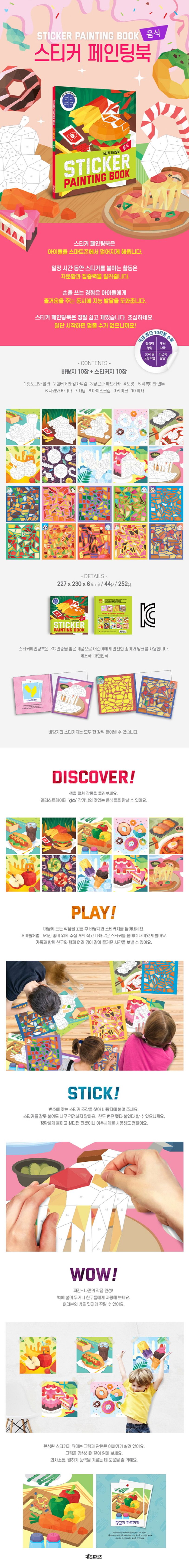 「스티커 페인팅북」시리즈는 어린이에게 가장 인기 있는 캐릭터를 로우폴리아트 기법(3D 입체 모양)을 이용해 템플릿으로 만들었으며, 라벨에 맞는 스티커를 찾아 붙이면서 모자이크 그림을 완성하는 책입니다. 작품을 완성하는데 따로 도구가 필요 없으며, 활동에 필요한 재료가 책 안에 모두 들어 있습니다. 특별한 예술 감각이 없더라도 번호에 맞는 스티커만 붙이면 누구나 자신만의 작품을 탄생시킬 수 있습니다.