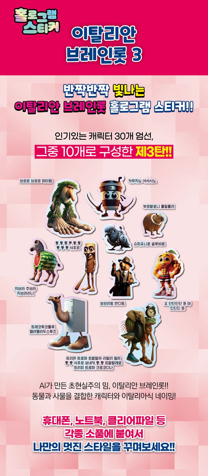 -최신 인기 캐릭터 '이탈리안 브레인롯' 스티커 10개로 구성.