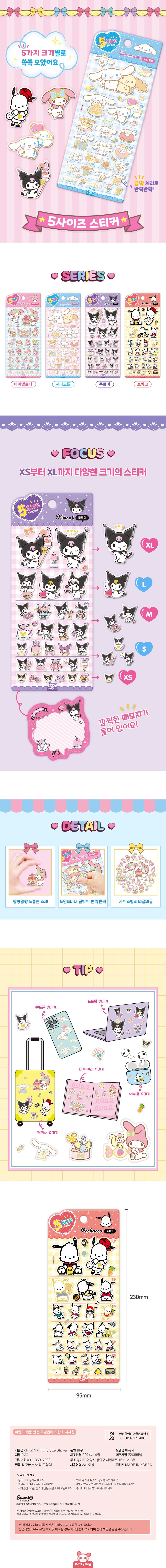 - 스티커 : 투명한 젤리 느낌의 산리오캐릭터즈 스티커를 만나보세요. 붙였다 뗐다 재사용이 가능하며 XS부터 XL까지 5가지 크기별로 귀엽고 깜찍한 그림을 모았어요. 내 소지품에 산리오캐릭터즈 친구들을 붙여보세요. 꾸미기에 필요한 크기들을 모아 사이즈별로 분류했답니다. 크기에 맞에 쏙쏙 골라 붙이기에 활용만점이에요. 포인트마다 금박까지 추가하여 예쁘게 반짝거려요.