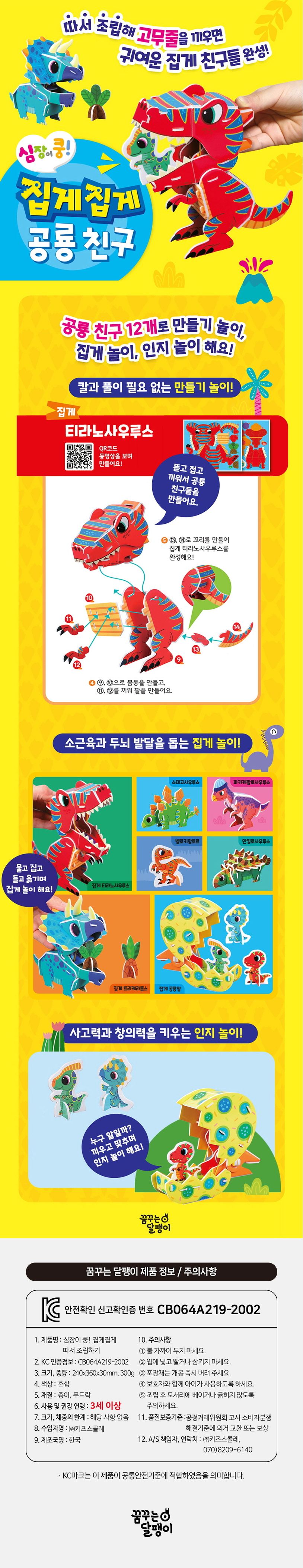 똑똑 따서 쓱쓱 접고 척척 끼우기만 하면 풀이나 가위 등 다른 재료 없이도 입체 놀잇감을 완성할 수 있어, 아이들은 도전 정신, 성취감, 자신감을 키울 수 있다. 축을 만들고 고무줄을 끼워 만든 집게 친구들을 가지고 놀면서 고무줄의 탄성과 집게의 구조 등 과학 원리를 자연스럽게 익힐 수 있다. 직접 만든 장난감으로 하는 집게 놀이와 인지 놀이는 아이의 소근육 발달과 두뇌 발달에 도움을 준다.