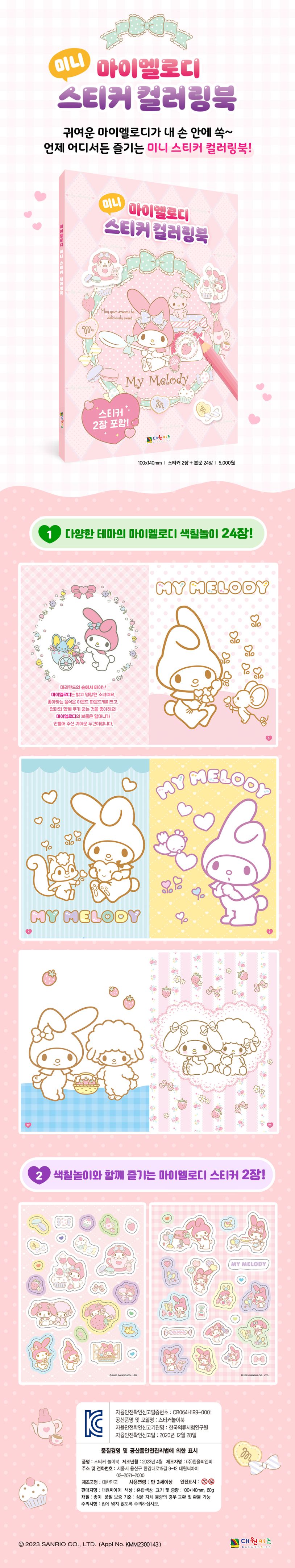 색칠놀이와 함께 즐기는 마이멜로디 스티커 2장이 함께 들어있답니다!