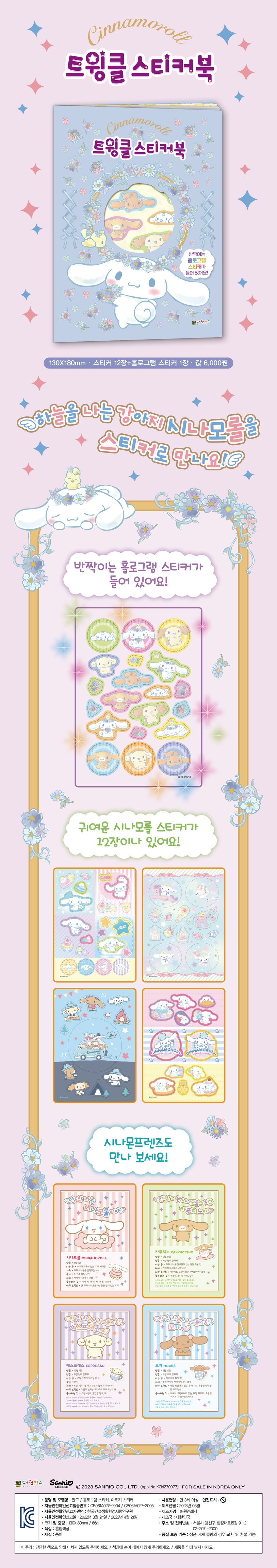 인기 캐릭터 “시나모롤”의 이미지로 구성한 스티커북입니다. 다양한 디자인의 시나모롤 스티커가 들어 있어 다이어리, 탑로더 등을 꾸밀 수 있습니다. 반짝반짝 빛나는 홀로그램 스티커도 들어 있어 특별한 꾸미기가 가능합니다. 책 속에는 시나모롤과 함께 카푸치노, 에스프레소 등 시나몬프렌즈의 캐릭터 소개도 들어 있어요. 사이즈가 작아 들고 다니기도 편해요. 어디서든 ≪시나모롤 트윙클 스티커북≫과 함께하세요.