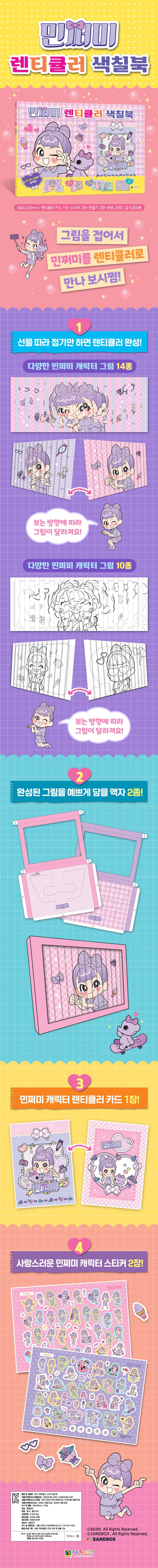 인기 유튜버 민쩌미 캐릭터를 렌티큘러로 만드는 색칠북입니다. 오른쪽, 왼쪽에서 각각 다른 그림이 보이는 플라스틱 렌티큘러 카드 1장과 직접 오리고, 색칠하며 재미있게 만드는 렌티큘러 그림 24종이 들어 있어요. 칸에 맞춰 요리조리 색을 칠하다 보면 자연스럽게 집중력과 사고력, 표현력이 쑥! 올라요. 귀여운 민쩌미 스티커와 완성된 렌티큘러 그림을 예쁘게 보관할 수 있는 액자 2종도 놓치지 마세요!