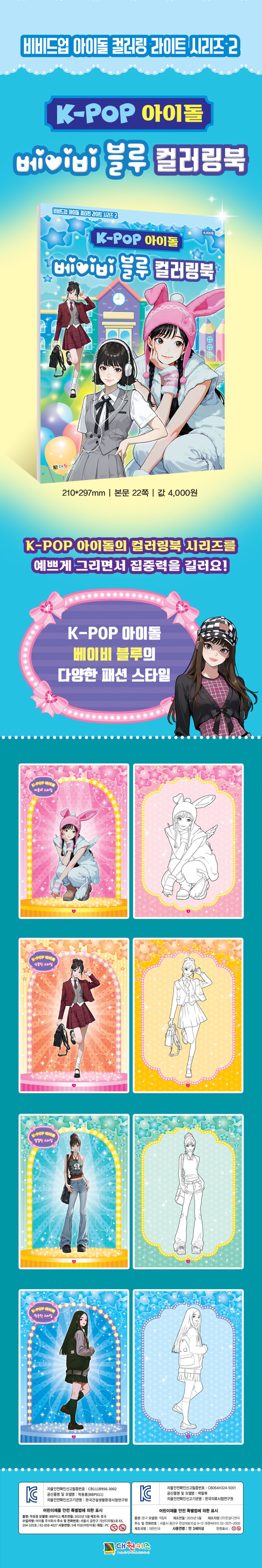 ‘비비드업 아이돌 컬러링 라이트 시리즈’의 2권으로 인기 아이돌의 교복 스타일링과 일상 패션을 주제로 구성한 컬러링 북입니다. 실제 아이돌의 자연스러운 모습을 담은 듯한 현실적인 의상과 표정으로 친근한 매력을 더했으며 자신만의 컬러로 스타일링을 하면서 색채 감각과 패션 이해도를 자연스럽게 높일 수 있는 감각적인 K-POP 아이돌 베이비 블루 컬러링북 을 만나보세요.