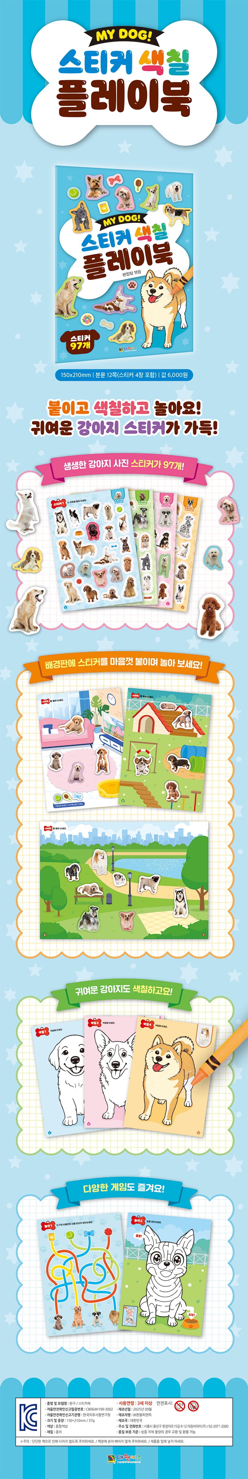푸들, 몰티즈, 포메라니안 등 귀여운 강아지 사진 스티커가 97개 들어 있어요. 사진으로 스티커를 구성하여 생동감과 귀여움이 더 크답니다. 배경판이 있어 스티커를 붙이며 놀 수 있어요. 멋진 색을 골라 강아지 그림에 색칠도 할 수 있지요. 다양하게 구성한 게임도 즐겨 보세요! 사이즈가 작아 어디에나 들고 다니기도 좋아요. ≪MY DOG! 스티커 색칠 플레이북≫으로 언제 어디서나 재미있게 놀이해 보세요!
