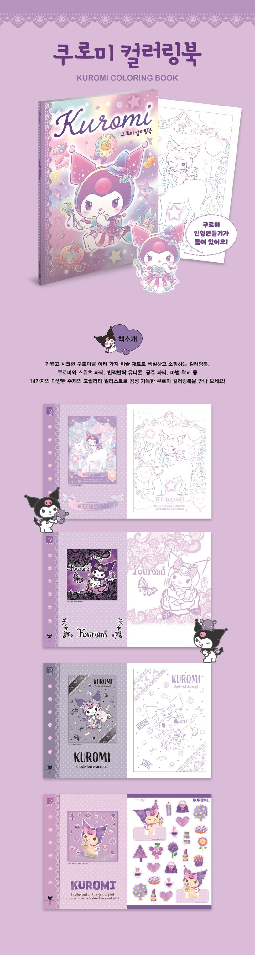 귀엽고 시크한 쿠로미를 여러 가지 미술 재료로 색칠하고 소장하는 컬러링북.