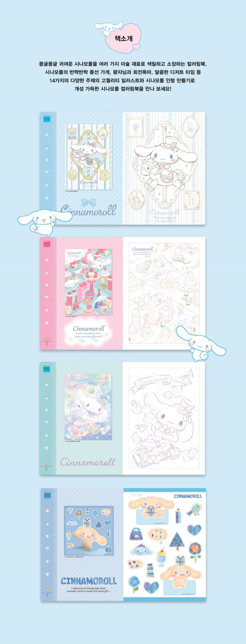 몽글몽글 귀여운 시나모롤을 여러 가지 미술 재료로 색칠하고 소장하는 컬러링북.
