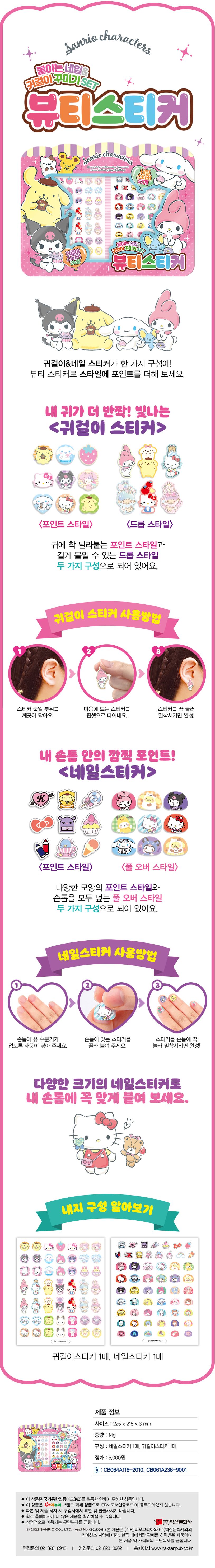 나만의스타일을연출할수있는네일&뷰티스티커가한세트로!다양한모양의포인트스티커와손톱,발톱을전부덮는풀오버스티커와,다양한종류의귀걸이스티커를만나보세요!반짝반짝네일스티커로손톱,발톱을직접꾸며보세요!첫째,손톱을깨끗이정리한후원하는스티커를붙여간단하게스타일을연출할수있어요.둘째,기존네일스티커와다르게발톱에도꼭맞게붙일수있어요!도톰한에폭시스티커를귀에붙여보세요!첫째,귀에밀착되어일상생활에불편없이사용할수있어요.둘째,작지만알찬구성!1매안에여러가지캐릭터가들어있어아이들이좋아하는스티커를고를수있어요!