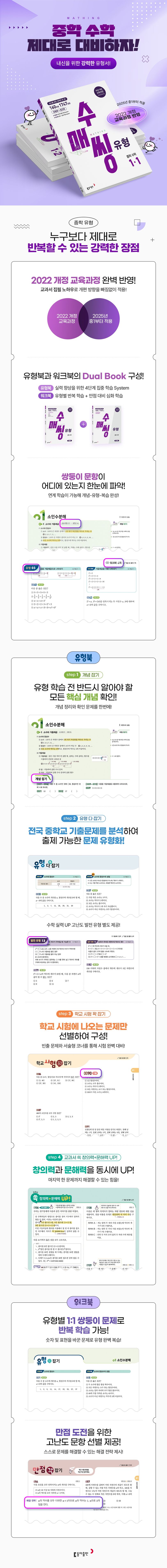 전국의 중학교 기출문제를 유형으로 분석하여 중요, 수매씽Pick, 발전 유형을 통해 수학 실력을 향상할 수 있습니다.