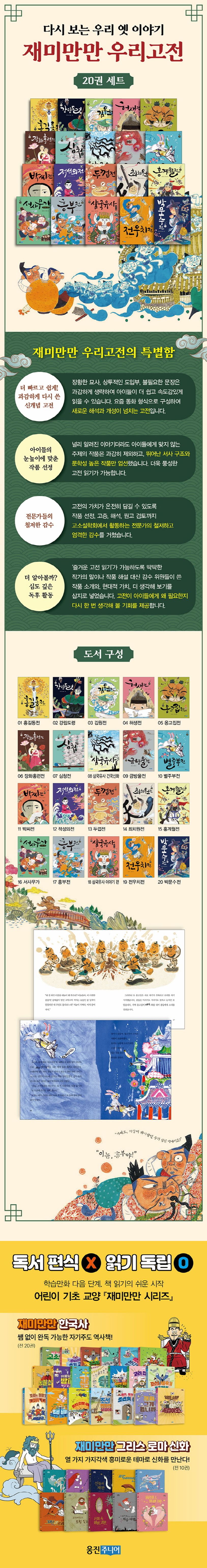 「재미만만 우리고전」제4권『허생전』. 이완 장군이 숨은 인재라고 소문난 허생의 집을 찾아갔어요. 그런데 허생은 고래고래 소리를 지르며 장군을 내쫓지 뭐예요. 뭔가 마땅치 않으면 나라님이 와도 내쫓을 인물이에요. 그래요, 허생은 괴짜 선비였어요. 남의 돈을 빌려서 어마어마하게 큰돈을 벌더니, 그 돈을 바다에 버리고 왔다니, 믿어지나요? 누덕누덕 기운 옷에, 찌그러진 갓을 쓴 선비가 돈을 몽땅 버리고 온 사연, 한번 들어 볼래요?