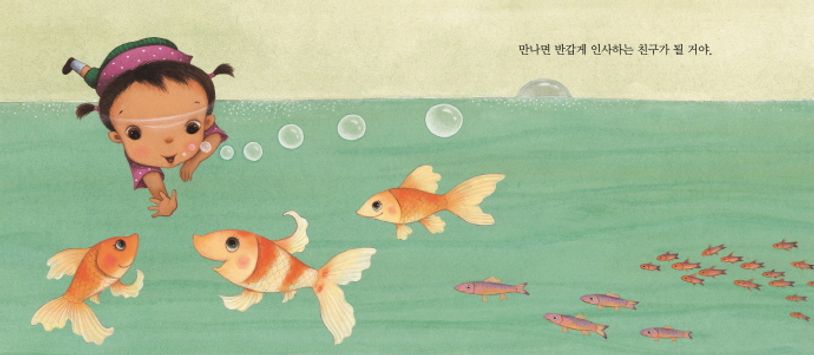내 옆에 저 아이가 처음 만나서 낯설 때, 하지만 왠지 궁금해서 말을 걸어 보고 싶을 때, 재미있어 보이는 놀이를 하는 아이들 속에 같이 끼고 싶을 때, 아이들은 생각하겠지요. ‘같이 놀고 싶다. 어떻게 하지?’ 선뜻 말을 거는 아이도 있겠지만 그렇지 않은 아이도 많습니다. 『나랑 친구할래?』는 그런 엄마의 바람과 걱정, 아이들의 물음에 답하는 책입니다. 친구란 어떤 존재인지, 친구와 사이좋게 지내려면 어떻게 해야 하는지, 나는 누군가에게 먼저 좋은 친구인지 곰곰 생각하게 도와주는 책이지요. 그렇다고 친구 사귐에 대해 장황한 설명을 늘어놓지는 않습니다. 그저 절로 미소를 머금게 되는 정겹고 따뜻한 그림들을 찬찬히 보면서, 내 귓가에 대고 소곤소곤 들려주는 듯한 아이의 짧은 다짐들에 고개를 끄덕여 주기만 하면 됩니다.