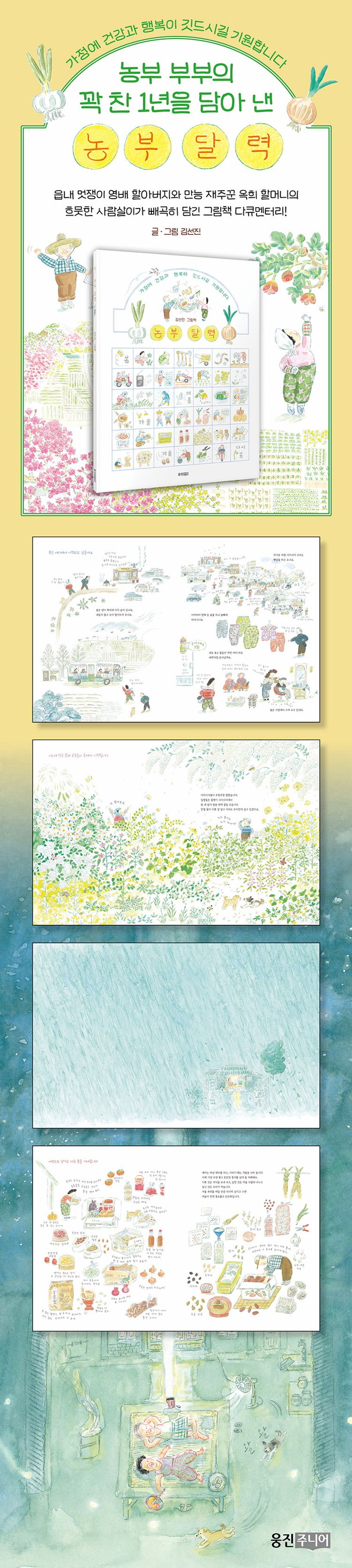 『농부 달력』은 글과 그림으로 이야기를 전하는 그림책 다큐멘터리입니다. 씨앗의 성장과 절기별 날씨 변화를 넘어선 므흣한 사람살이가 빼곡히 들어 있어, 영상이 전달할 수 없는 행간의 미학을 감동적으로 담아냅니다.