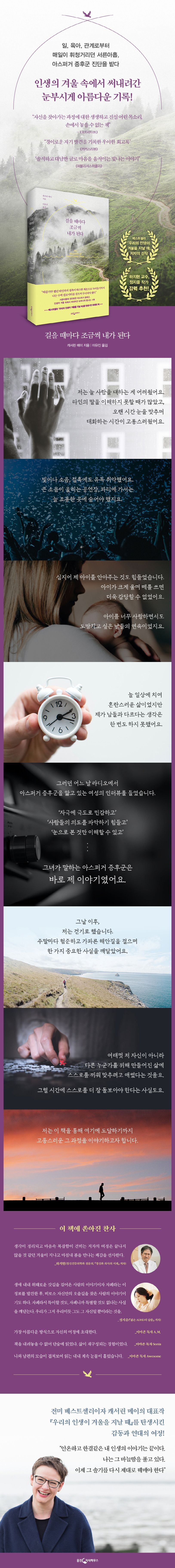 “자신을 찾아가는 과정에 대한 생생하고 진심 어린 목소리”(포치라이트), “경이로운 자기 발견을 기록한 우아한 회고록”(커커스리뷰)이라는 찬사를 받은 이 책은 전작과 마찬가지로 삶을 바라보는 작가의 숭고한 시선과 아름답고 섬세한 문장으로 가득하다. 그럴 듯하게 포장해온 엄마, 아내, 작가로서의 삶에서 벗어나 마음속 울음을 들여다보려는 의지, 인생의 불행과 정면으로 맞서는 결연함, 녹초가 될 때까지 걸으며 비로소 자신의 진정한 모습을 되찾는 작가의 여정은 큰 울림을 선사한다. 고통 속에서 빚어낸 작가의 깊은 통찰은 휘청거리는 일상 속에서 ‘나’를 잃어가고 있는 모든 이들에게 다시금 인생의 의미와 자기 발견의 중요성을 되새기게 한다.