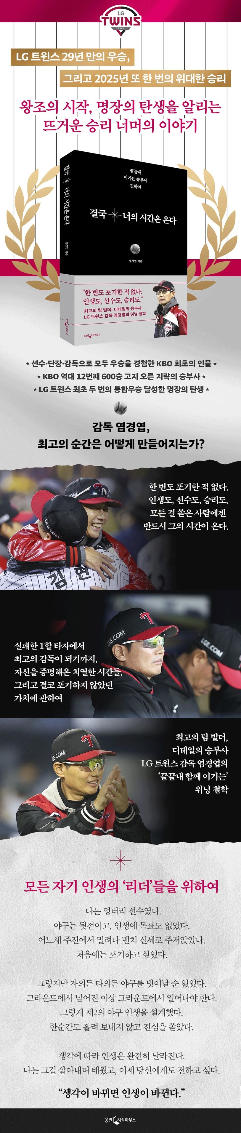 선수·단장·감독으로서 모두 우승을 경험한 KBO 최초의 인물이자, 프로야구 역대 12번째로 600승 고지에 오른 명장. LG 트윈스 최초로 두 번의 통합우승을 달성한 감독 염경엽이 처음으로 자신의 야구와 인생을 이야기한다.