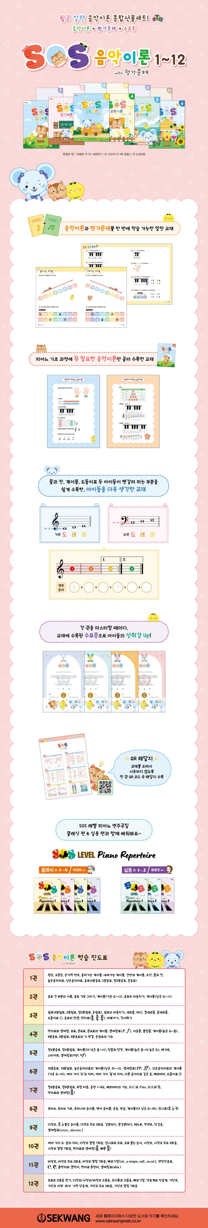 ★ SOS Level 피아노 연주곡집 클래식 편, 실용 편과 함께 연계해서 공부할 수 있으며, 음악이론과 평가문제를 한 번에 학습할 수 있는 교재입니다.