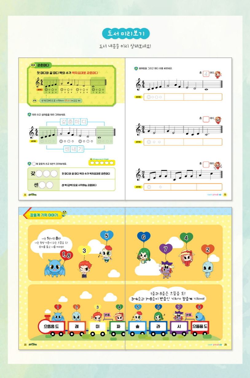 전 12권으로 구성한 기초음악이론 교재입니다. 세 권이 끝나면 한 권씩 앞서 배웠던 음악이론을 한 번 더 확인 학습할 수 있도록 구성하였습니다. 개념을 이해하고 실제 연주에서 활용할 수 있도록 음표와 쉼표의 리듬을 중점학습 할 수 있으며, 음악이론 학습에 지친 아이들을 위해 쉬어가는 페이지를 수록하였습니다. 또한 각 권마다 배웠던 내용을 마무리 할 수 있도록 사지선다형 문제를 수록하여 아이들의 학습 결과를 평가할 수 있습니다. 마지막으로 자칫 지루할 수 있는 음악이론 시간을 신비, 금비, 하리, 강림 등, 신비아파트 친구들과 함께하여 흥미를 돋울 수 있습니다.