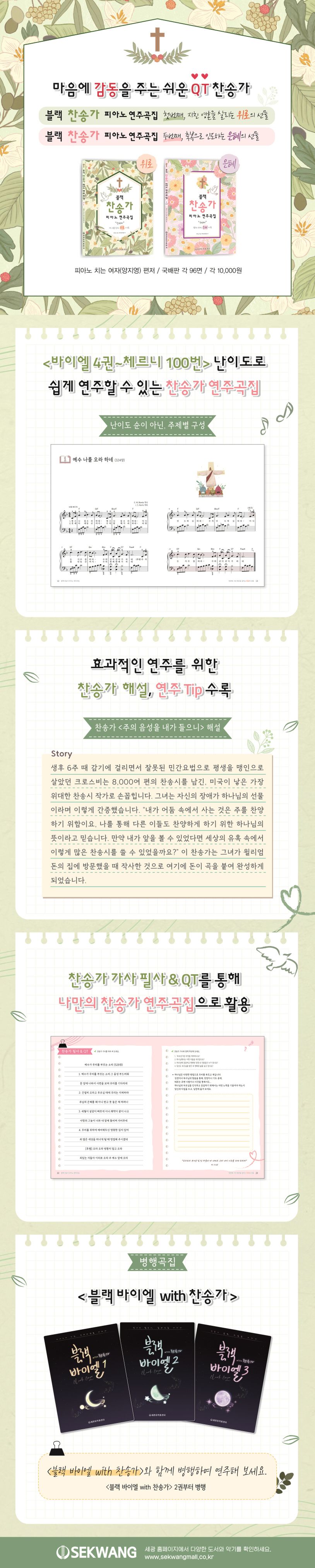 ★ 많이 불리는 찬송가들을 선정하여 각 주제별로 수록하였으며, 〈블랙 바이엘〉의 난이도에 맞춘 쉬운 편곡으로, 함께 병행하여 연주할 수 있는 찬송가 연주곡집입니다.