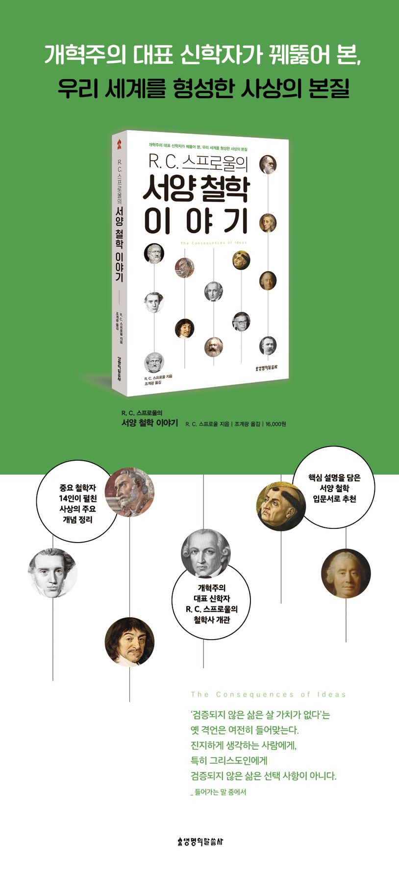 개혁주의 진영의 탁월한 신학자였던 스프로울이 철학의 흐름을 다룬 이 책을 쓴 이유는, 그리스도인이 근본을 생각하는 철학적 사고력을 기르고, 그 사고력으로 세속 풍조에 깃든 아이디어에 무감하게 휩쓸리지 않도록 하기 위해서다. 철학 사상은 세계의 근본을 생각하고자 했던 이들의 산물임을 알고, 지금 이곳을 사는 그리스도인이 그 같은 근본적 사고를 익히고 태도를 바루도록 도움을 주는 것이 이 책의 쓰임일 것이다. 더 나아가 독자들이 문화를 선별하고, 문화에 선한 영향력을 미치는 데도 도움이 될 것이다.