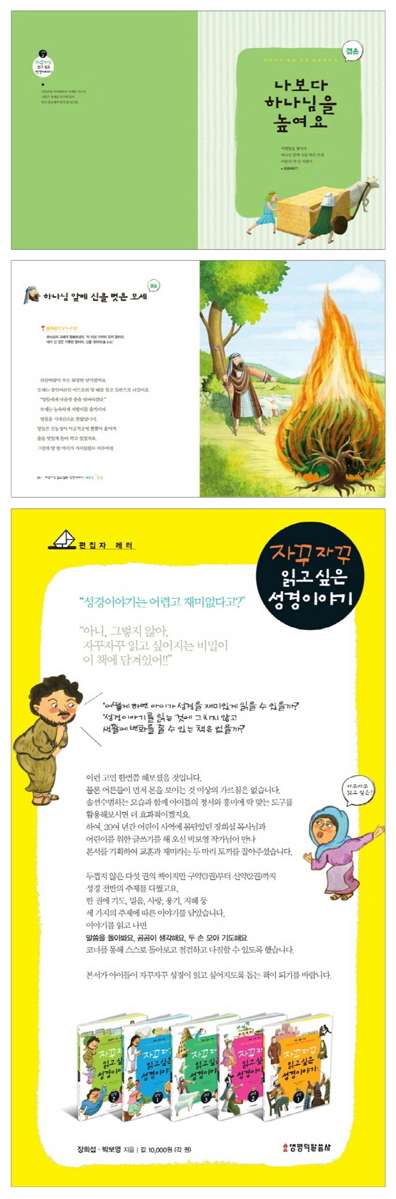 어린이를 위한 주제별 성경이야기『자꾸자꾸 읽고 싶은 성경이야기 구약』제 3권. 읽고 또 읽으면 신앙과 지혜가 쑥쑥 자라는 자꾸자꾸 읽고 싶은 15가지 주제별 성경이야기를 담았다. 나보다 하나님을 높여요, 하나님이 함께하면 두렵지 않아요, 하나님께 지혜를 구해요 등 3부로 나누어 구성했다.