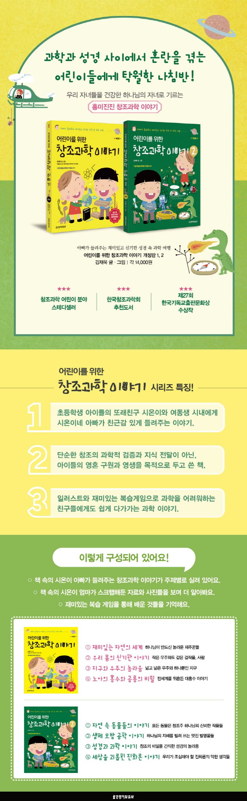 단순한 창조의 과학적 검증과 지식 전달이 아닌, 아이들의 영혼 구원과 영생을 목적으로 두고 쓴 책.