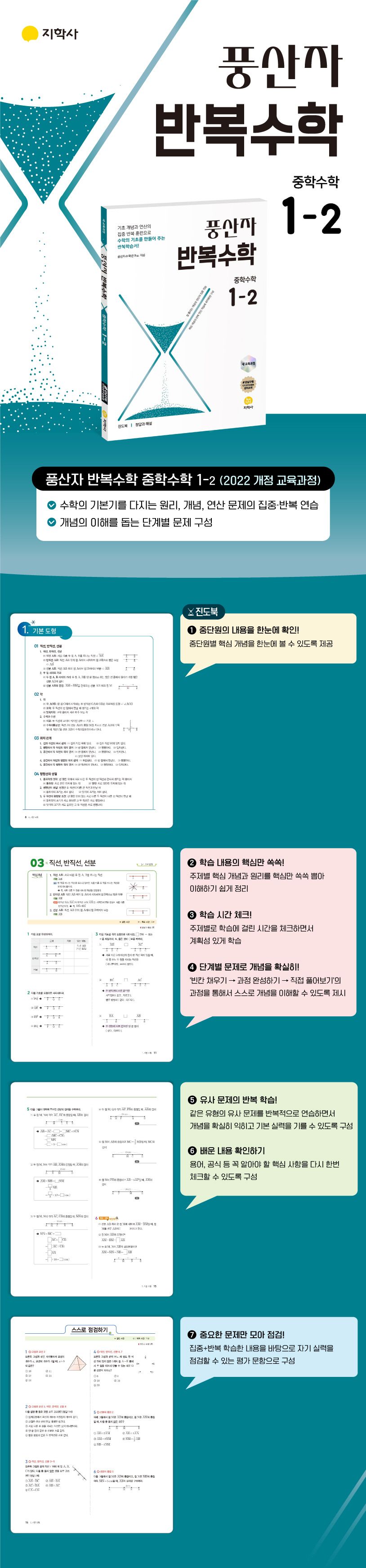 Ⅰ.기본도형1.기본도형2.작도와합동Ⅱ.평면도형과입체도형1.다각형2.원과부채꼴3.다면체와회전체4.입체도형의겉넓이와부피Ⅲ.통계1.자료의정리와해석