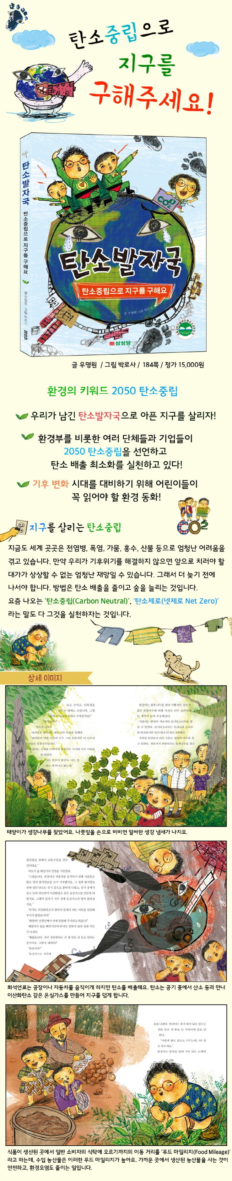 이러한 환경 이슈가 부각되고 있는 시점에 2012년에 나온 '지구를 아프게 하는 탄소발자국'이 '탄소 발자국 - 탄소중립으로 지구를 지켜요'로 개정하여 출간 되었습니다.
