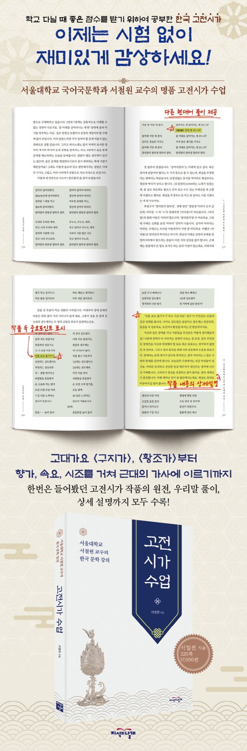 모두가 서울대에 입학할 수는 없다. 그러나 모두가 서울대 최고의 강의를 들을 수는 있다. 《고전시가 수업》을 열어 보자. 어디서나 서울대 명강의 현장이 눈앞에 펼쳐진다.